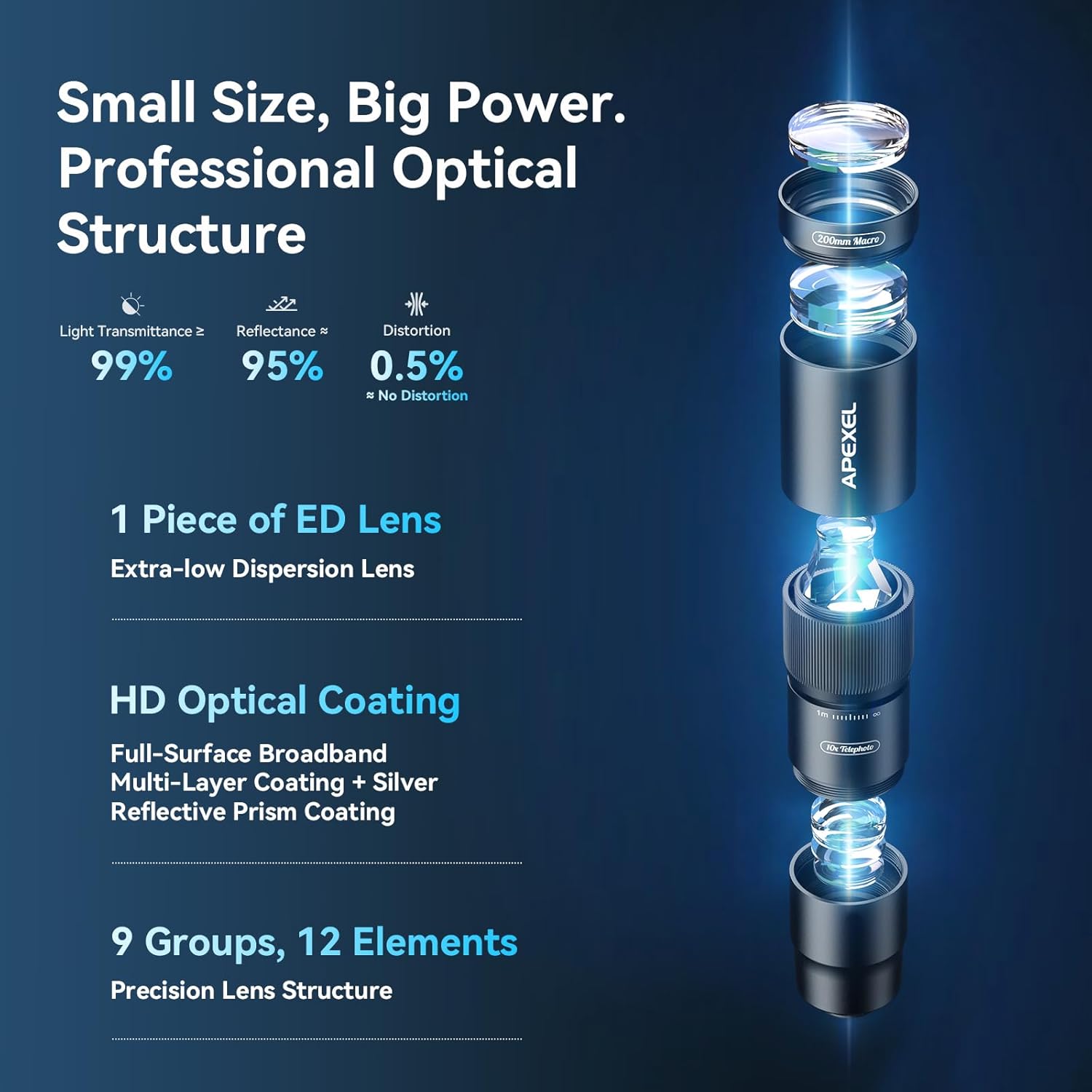 APEXEL 10X Tele-Macro Pro Dual Lens 2-in-1, Portable Clip-On Telephoto Macro Lens for iPhone, Compatible with Samsung & Almost All Smartphones, Pro Photography for Travel, Concert, Exploration